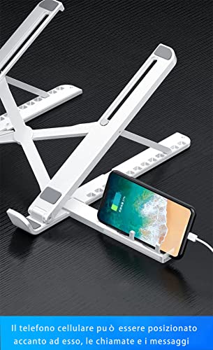 【Ampia compatibilità】: il supporto per laptop supporta la maggior parte dei laptop: Mac, Dell, Asus, Acer, Chromebook, Alienware, ecc. E il lato può premere e posizionare il supporto del telefono per comodità.