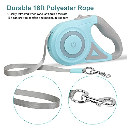 Guinzagli retrattili per cani, guinzaglio per cani da 16 piedi con luce, impugnatura antiscivolo, freno a un pulsante e blocco antigroviglio, guinzagli per cani di piccola media grande taglia