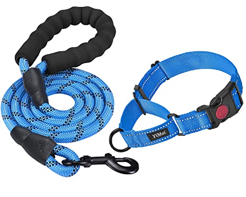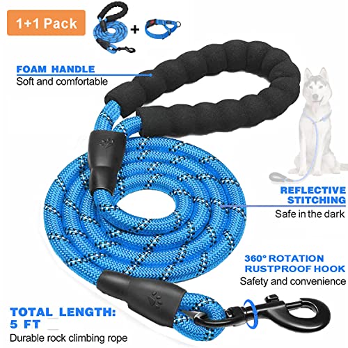 Guinzaglio per Cani e Collare, 1,5 m Robusto Guinzaglio per Cani con Comoda Impugnatura Imbottita e Fili Altamente Riflettenti per Cani di Taglia Piccola Medi (L, Blu)