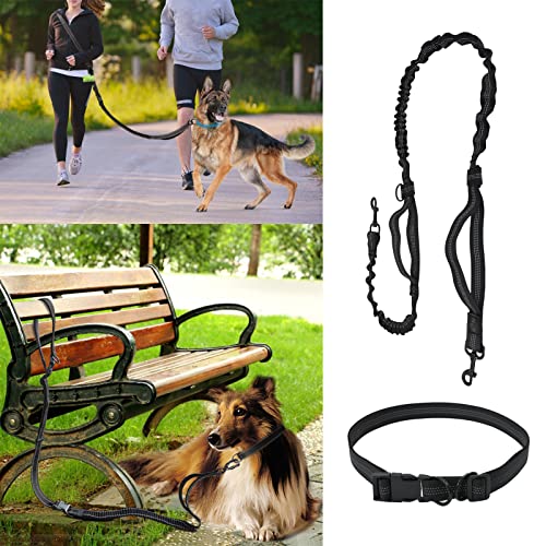Guinzaglio Cani a Mani Nero Cintura in Vita Regolabile e Guinzaglio Elastico Retrattile a Doppia Maniglia con Cintura in vita a Doppia Maniglia per Addestramento, Camminata, Jogging con Cani