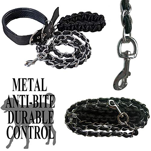 1. Catena in metallo + corda di nylon: il guinzaglio è composto da una catena solida cromata e una corda di nylon ad incastro anti-morso, antiruggine, durevole, forte forza di trazione.