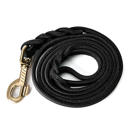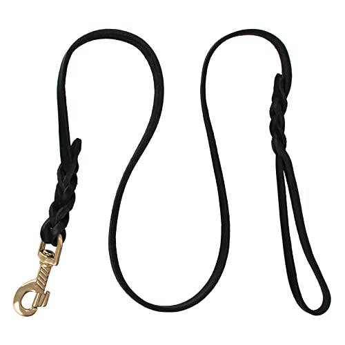 Guinzaglio per cani in pelle, 1,60 m, con moschettone, in pelle grassa, per cani di taglia media, colore nero, con gancio in rame
