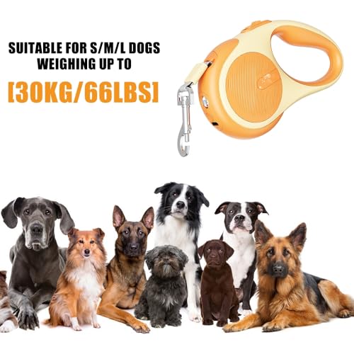Guinzaglio per Cani Retrattile,3/5m USB Guinzagli Estensibile per Cane con Torcia a LED e Braking di Un Clic per Cani di Piccola e Media (Fino a 66 Libbre)