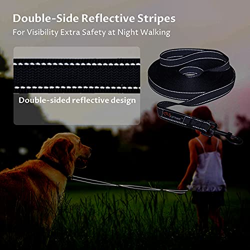 [NYLON ANTI-MASTICAZIONE] Il guinzaglio per cani è realizzato in nylon di alta qualità, gomma intrecciata e cuciture ad alta densità e ha tutte le caratteristiche dei guinzagli per cani di alta gamma.I tessuti in nylon sono indossabili e antiscivolo, quindi questo guinzaglio per cani di grossa taglia ha vinto non cade dalle tue mani anche in caso di pioggia. Il guinzaglio per cani flessibile non è facile da rompere e abbastanza forte per tutte le razze e la scelta migliore per l'addestramento.