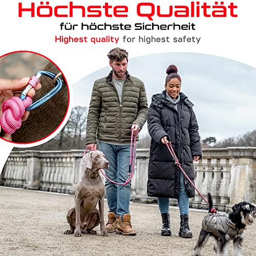 Guinzaglio per cani di taglia media e grande con lunghezza 2,25 m | Cordone rotondo regolabile su 3 lunghezze con 2 moschettoni | Cordicella di classe con moschettone | Laccio doppio multifunzione