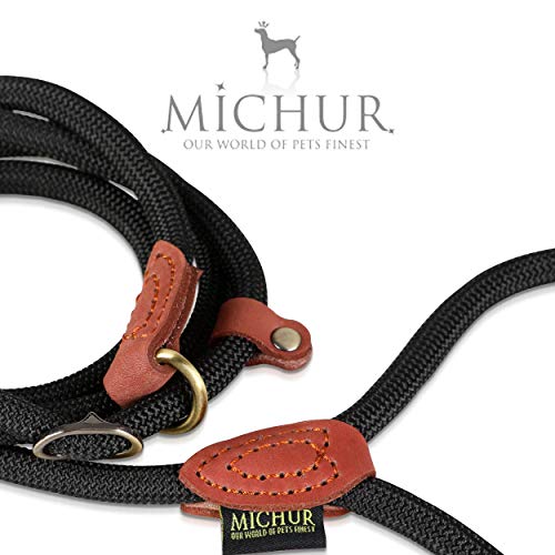 Guinzaglio Michur Sherpa Guinzaglio Black Stone Guinzaglio in Corda di Nylon Rinforzato con Robusta Pelle, Disponibile in Diverse Taglie e Colori, guinzaglio Pelle Nero Cane, Pelle, Pets