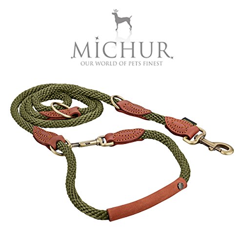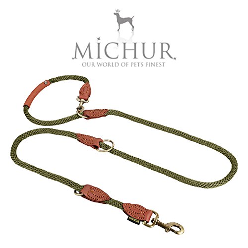 Guinzaglio Michur Sherpa Leash Guinzaglio Verde in Corda di Nylon Rinforzato con Robusta Pelle, Regolabile in 3 Posizioni, Disponibile in Diverse Dimensioni, guinzaglio Pelle Verde Cane, Pelle, Pets