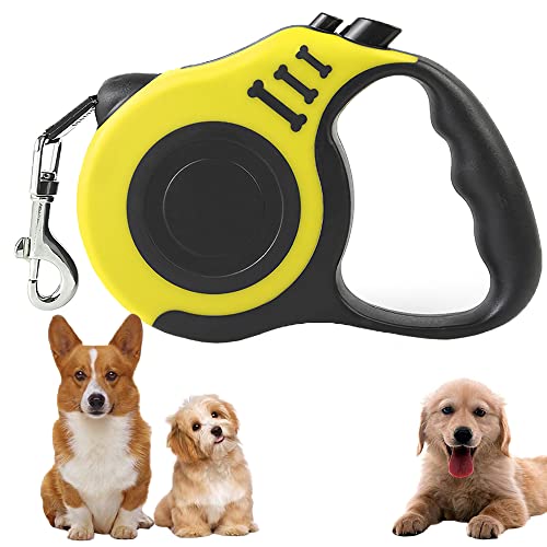 Guinzaglio Retrattile per Cani, Guinzaglio per Cani Allungabile, Guinzaglio Automatico per Cani, 5M Poliestere Allungabile Guinzaglio con Impugnatura Antiscivolo per Cani Fino a 40KG, Giallo