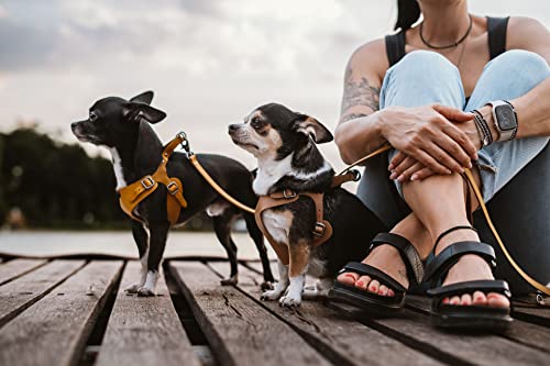 Guinzaglio in Vera Pelle By BECHIVA, Linea Basic per cani di piccola taglia. Chihuahua, Yorkshire Terrier, Maltese, razze piccole. Prodotto fatto a mano dal design minimalista (Yellow Honey/Black)