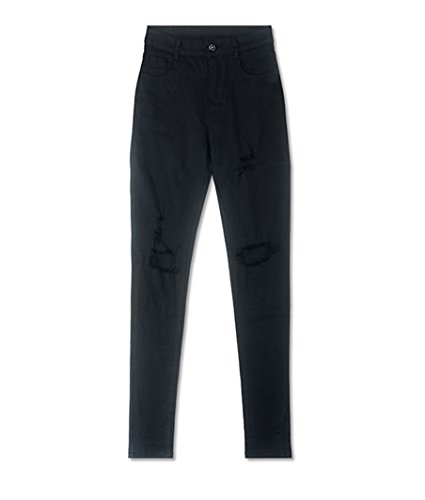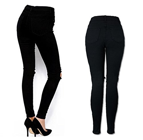 Guiran Donna Ginocchio Strappato Skinny Jeans Pantaloni A Vita Alta Legging L Nero