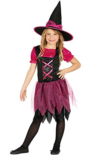 Guirca- Costume Strega Bambina 5/6 Anni, Colore Nero e Fucsia, da 5 a 6, 87445
