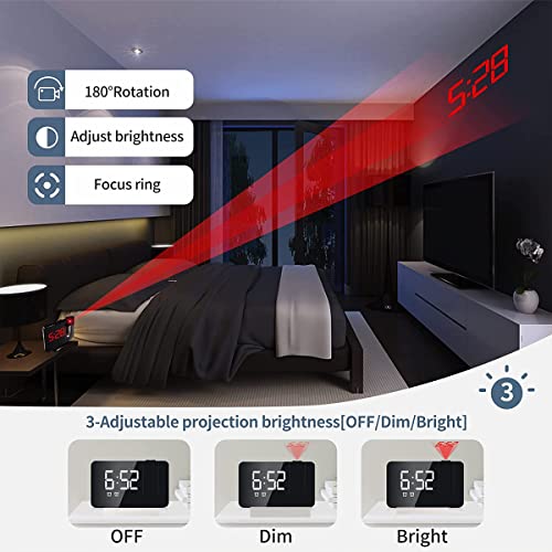 【180° Regolabile proiezione】La proiezione LED clock è progettata con angolo di regolazione di 180°, also our clock has a swap key you can project the time on wall or ceiling in 2-3m distanze, every site freely.
