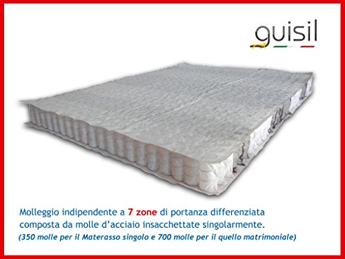 Guisil Materasso A Molle INSACCHETTATE INDIPENDENTI 26 CM Circa con LASTRA Memory da 5 CM A 9 Zone di PORTANZA DIFFERENZIATA Non SFODERABILE 80X190 Singolo