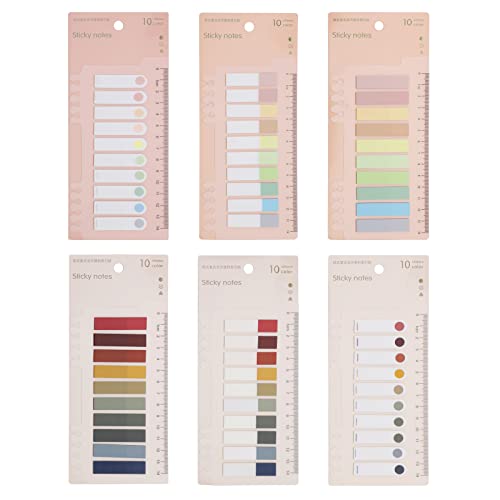 Gukasxi Confezione da 6 1200 linguette con indice di colore con righello, etichette riposizionabili, etichette scrittive, file classificabili per lettura, apprendimento, registrazione, appunti