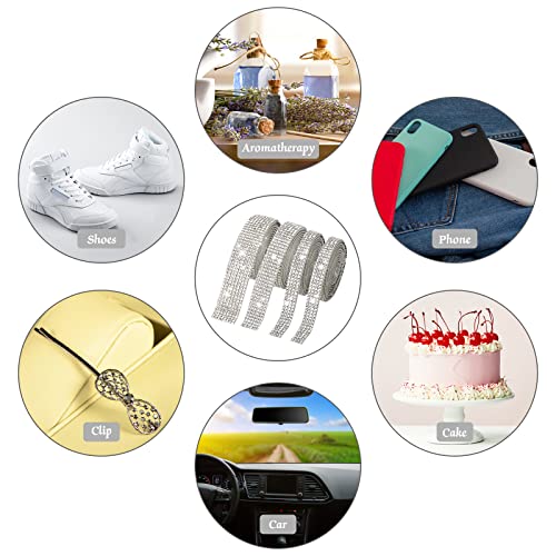 Gukasxi 4 rotoli di nastro autoadesivo con strass di cristallo e strass, adesivi decorativi per cornici, fai da te, strass per vestiti, telefono, decorazione auto (argento)