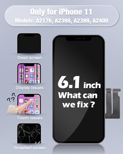 ☀【Applicazione&Garanzia】 Questo digitalizzatore per iPhone 11 può sostituire il gruppo digitalizzatore touch screen LCD rotto e difettoso. Come la dose dello schermo non risponde correttamente, problemi di visualizzazione, pixel di distorsione, schermi LCD incrinati, problemi di colore errati e LCD vecchio e morto. Ogni sostituzione dello schermo LCD dell'iPhone 11 è stata rigorosamente testata tre volte per funzionare perfettamente prima della spedizione.