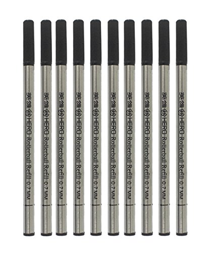 Gullor 10PCS La penna di rollerball dell'eroe ricarica la dimensione della sfera di 0.7mm, l'inchiostro nero, spirale