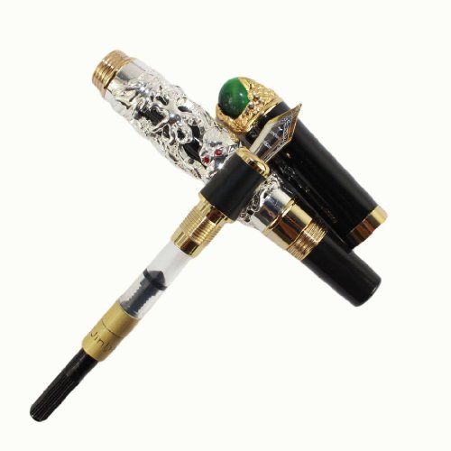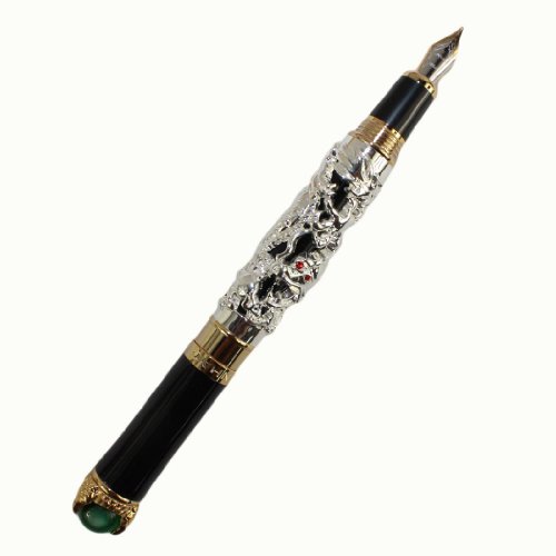 Gullor D'argento cinese della dinastia Ming stile imperatore di lusso drago gioco giada palla stilografica pennino medio