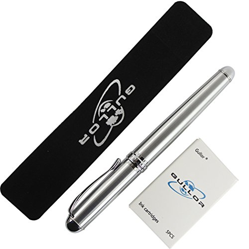 Gullor Extra Fine Nib Smooth Fountain Pen 750 Original Pen Pouch and Ink Cartridge Set Silver with ink