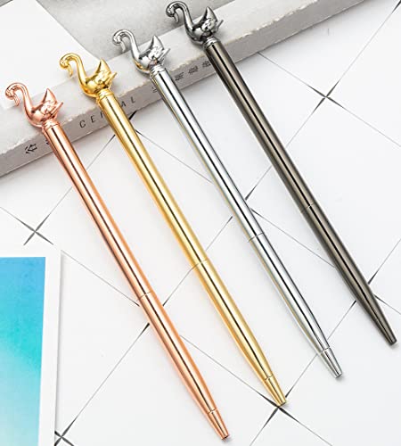 Gullor 4 penne a sfera retrattili, a forma di cigno, penne a barilotto in metallo, punta media, inchiostro nero, oro rosa