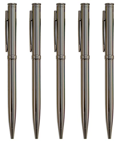 Gullor 5 penne a sfera retrattili, penne in metallo per regali, affari, ufficio, inchiostro nero a punta media da 1,0 mm, grigio