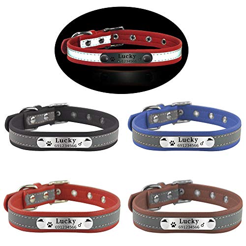 Gulunmun Collari con Nome Cane Riflettente in Morbido Stile Pet Dog PersonalizedCollars Nome e Numero di Telefono incisi-Nero S
