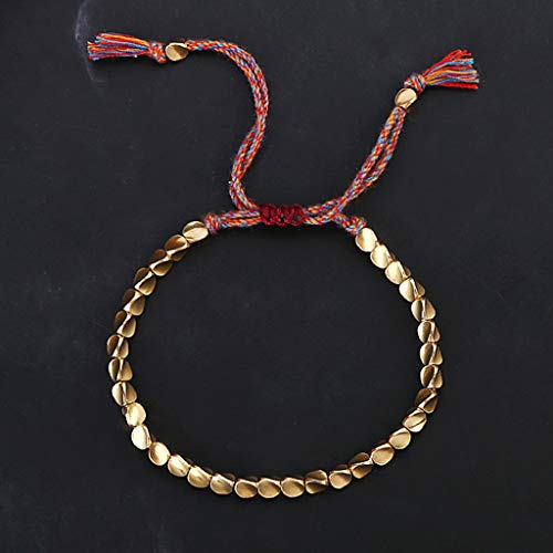 GUMEI Braccialetto di Perline di Rame Tibetano Fatto a Mano Braccialetto di Corda di Cotone Intrecciato Buddista