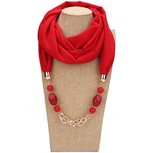 GUMEI Sciarpa a Fascia con Collana in Chiffon Stile Classico da Donna con Scialle con Ciondolo Gioielli