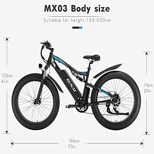 GUNAI Bici Elettrica Mountain E-Bike 26" 4.0 Fat Tire 48v Con Batteria agli Ioni di Litio 17ah Rimovibile e Doppio Assorbimento Degli Urti