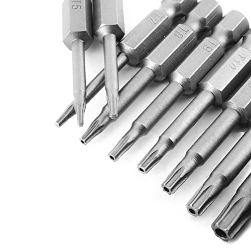 【Progettato Perfetto】 Le punte T8, T9, T10, T15, T20, T25, T27, T30, T40 hanno un foro circolare della dimensione appropriata per viti TORX interne, che può essere utilizzato per fissare viti e dadi. Gunpla inserti torx per avvitatore adatto a tutti gli operatori fai da te e professionali. Per fori elettrici, ingegneria, macchinari, manutenzione di elettrodomestici, utensili elettrici e pneumatici, ecc.