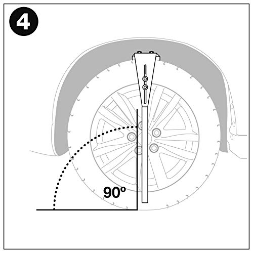 Il camber bar è completamente regolabile per ruote fino a 18 pollici in diametro e progettato per appendere sul pneumatico dando le mani libere.