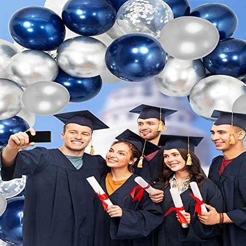 ✅【SET DA 60 PEZZI】: Palloncini blu navy (15 pezzi), argento coriandoli palloncini (15 pezzi);