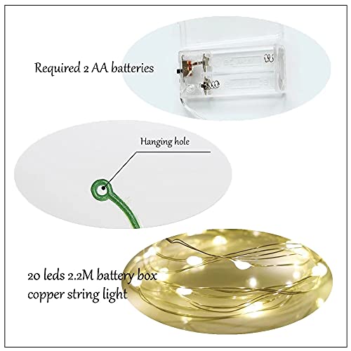 Flessibile: tutta la ghirlanda è attorcigliata con un filo di rame contenente piccoli micro LED in un colore bianco caldo, che fanno sembrare la ghirlanda luminosa e scintillante. Il filo di rame pieghevole può essere facilmente visualizzato in qualsiasi forma desiderata. Delicato e fata!