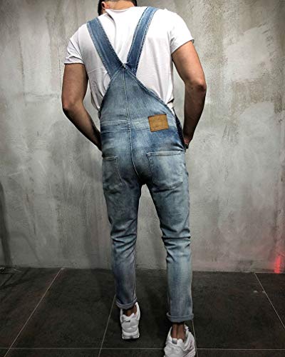 GUOCU Jeans Strappati per Uomo Slim Fit Salopette in Bretelles Pantaloni Tuta in Denim Salopette da Casual Lavoro Blu XL
