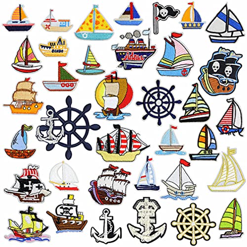 Guoguonb 12 toppe da ricamare sui pirati, accessori fai da te, da applicare con ferro da stiro, bandiera per bambini, teschio, barca a vela, toppe per cappelli, borse, jeans, decorazioni per
