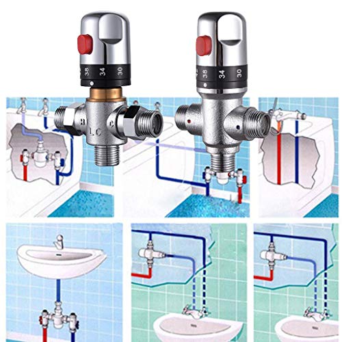 GUOJFEN Valvola del Rubinetto del Bagno di Controllo della Temperatura dell'Acqua del Miscelatore termostatico in Ottone per Gli Accessori del Sistema Doccia del Bagno di casa