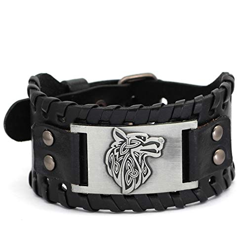 GuoShuang - Bracciale vichingo con lupo nordico con lupo e placcato Argento, colore: Vichinghi-1