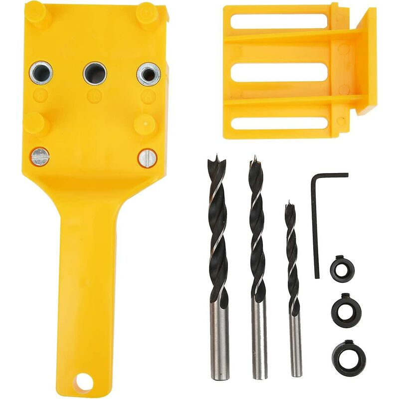GUOXING Per determinare la posizione del foro centrale e dei fori laterali: Localizzatore di foratura per la lavorazione del legno, comodo per determinare la posizione del foro centrale e dei fori laterali. Regolabile: la distanza tra il foro e il bordo del legno può essere regolata avanti e indietro. Per punte da trapano da 6 mm 8 mm da 10 mm: adatte per punte da trapano da 6 mm da 8 mm da 10 mm, facili da installare, possono essere utilizzate per la giunzione di tasselli rotondi. Per la punzonatura della lavorazione del legno: precisione millimetrica, la distanza può essere regolata con precisione, adatta per la punzonatura della lavorazione del legno. Alta precisione: questo localizzatore di perforazione ha un'elevata precisione, precisione millimetrica e la distanza può essere regolata con precisione, il che è adatto per la punzonatura della lavorazione del legno. Specifica: Condizione: nuovo di zecca Tipo di elemento: localizzatore di fori per trapano Materiale: plastica ABS