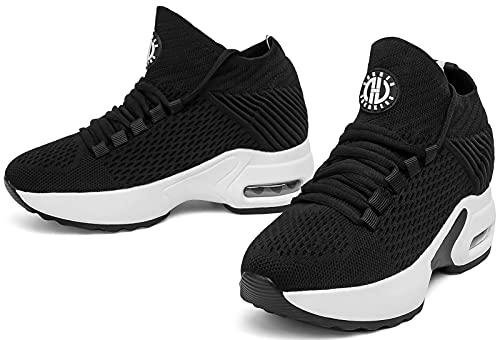 GURGER Sneakers Zeppa Donna Scarpe da Ginnastica Basse Sportive Fitness Scarpe Zeppa Interna 7.5CM Nero 40