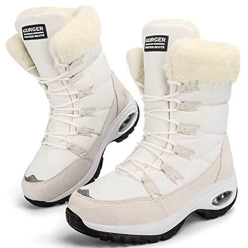 GURGER Stivali Donna Invernali Impermeabili Stivali da Neve Donna Doposci Alti Pelliccia Calda Dopo Sci Stivaletti Inverno Scarpe da Trekking Bianco 40