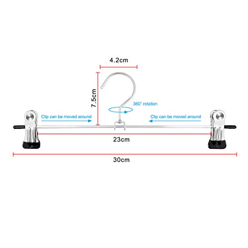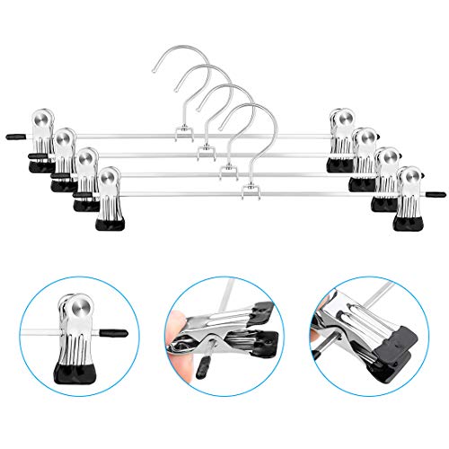Gurkkst - Confezione da 10 grucce per pantaloni, in metallo cromato, regolabili, con clip antiscivolo, salvaspazio, per pantaloni, gonne, pantaloni, vestiti