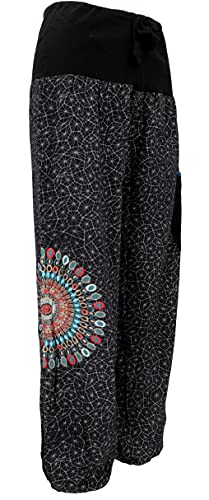 GURU-SHOP, Ampio Pluderhose con Ampia Fascia in Vita e Ricamo a Mandala, Nero, Cotone, Dimensione Indumenti:S/M (38), Pantaloni Pluderhosen e Aladin