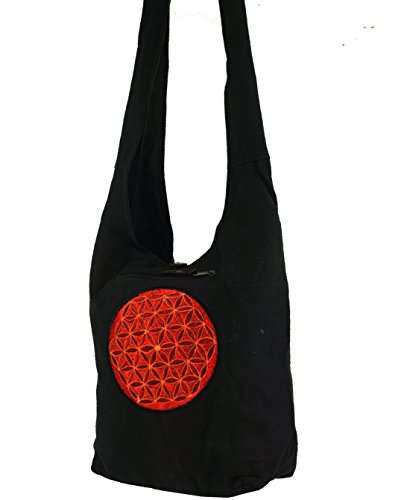 GURU SHOP Besticktes Sadhu Bag, Goa Tasche Schulterbeutel - Schwarz/rot, Herren/Damen, Baumwolle, Size:One Size, 40x40x25 cm, Alternative Umhängetasche, Handtasche aus Stoff