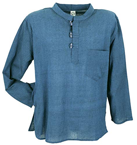 Guru-Shop, camicia da uomo, stile Nepal, pescatori, Hippie, in cotone, abbigliamento alternativo Blau XL