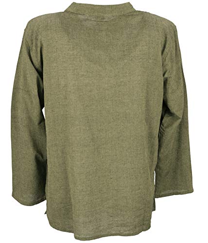 Guru-Shop, camicia da uomo, stile Nepal, pescatori, Hippie, in cotone, abbigliamento alternativo verde muschio M
