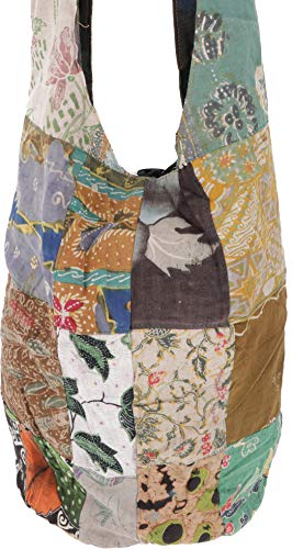 GURU SHOP Grande Borsa a Tracolla Boho, Grande Borsa Patchwork, Shopper - Verde, Unisex - Adulti, Cotone, Size:One Size, 40x38x5 cm, Borse a Tracolla
