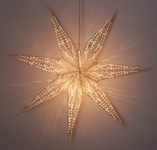 GURU SHOP Stella di Carta Luminosa Dell'Avvento Pieghevole, Stella di Natale 60 cm - Osiris Bianco, Stelle di Carta - Monocolore