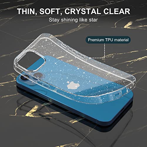 【Glitter Design】Custodia iPhone 13 Glitter Trasparente Silicone mostra il colore originale dell iPhone 13, Offri una protezione totale preserva la bellezza originale di telefono. Con glitter brillanti bling Design conferisce un fascino al telefono.