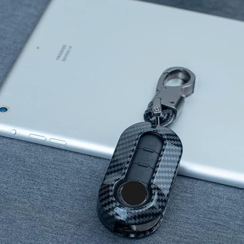 Guscio Chiave in Carbonio con Pad 3 Tasti + Portachiavi per Fiat Lancia - Cover Carbon Look Tastierino Pulsanti con Porta Chiavi compatibile con 500 Punto Bravo Panda 500L Y Ypsilon Musa Delta