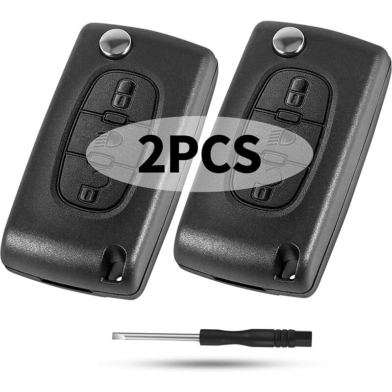 2 chiavi: 2 custodie per auto a 3 pulsanti VA2, CE0523. Nota la batteria, scarica. Notare la tabella di confronto. Compatibile: adatto per tipo chiave Citroën, Peugeot Prestare attenzione alla forma della chiave. Installazione: la scatola viene consegnata senza scheda radio né transponder . Può essere facilmente sostituito premendo la mini apertura laterale. Facile da usare: tutti i pulsanti possono essere comunque azionati e premuti come di consueto, proteggendo efficacemente la chiave dell'auto. La ricezione del segnale è buona e non blocca il segnale. Contenuto: 2 chiavi pieghevoli 3 chiavi. I componenti elettronici (chip transponder) non sono inclusi. In caso di domande, contattaci.